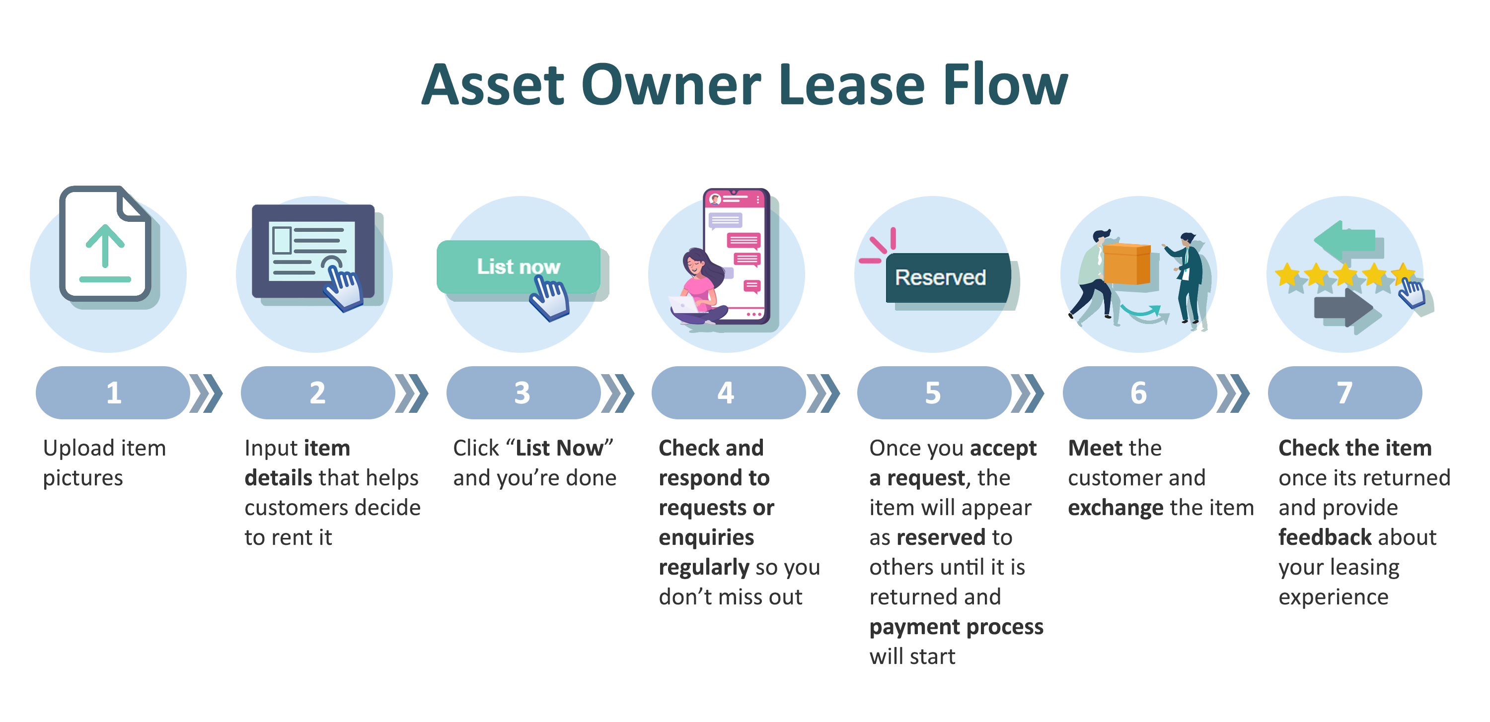 OnTheLease is a rental platform. Here you can be a customer to rent anything you need, or you can be an asset owner and lease out your item to earn some extra money. Below are the flows for being a customer and being an asset owner.